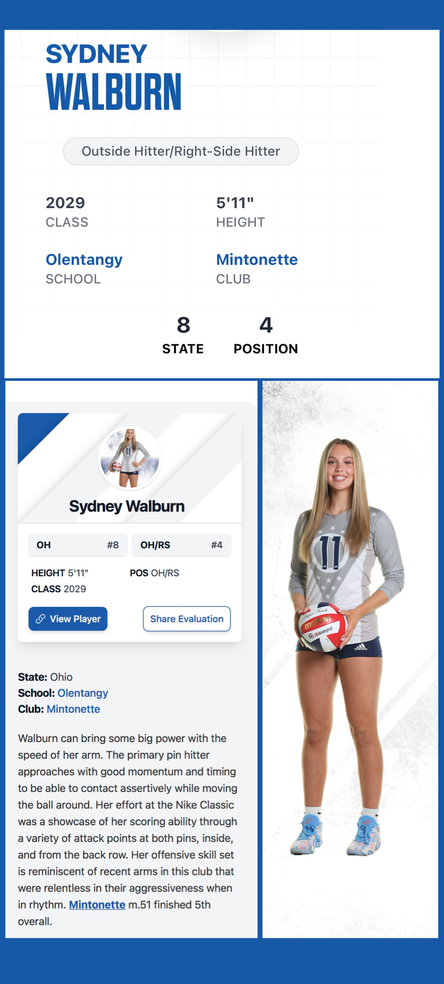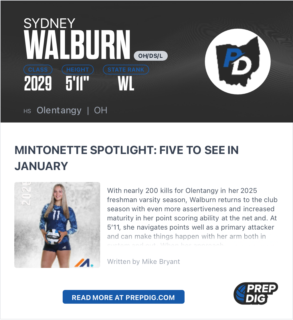 • Prep Dig Ranked Player, Class of 2029 (8th in Ohio, 4th in Position)